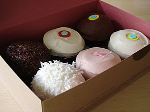 Update August 2009: You may have noticed recently that Sprinkles each week has been tweeting about secret cupcakes (that only exist for a day and in small qtys) composed by mixing their regular flavors. For example: vanilla & peanut butter or strawberry w/ choc — I WILL NOT be trying all these. I would probably drop dead.
