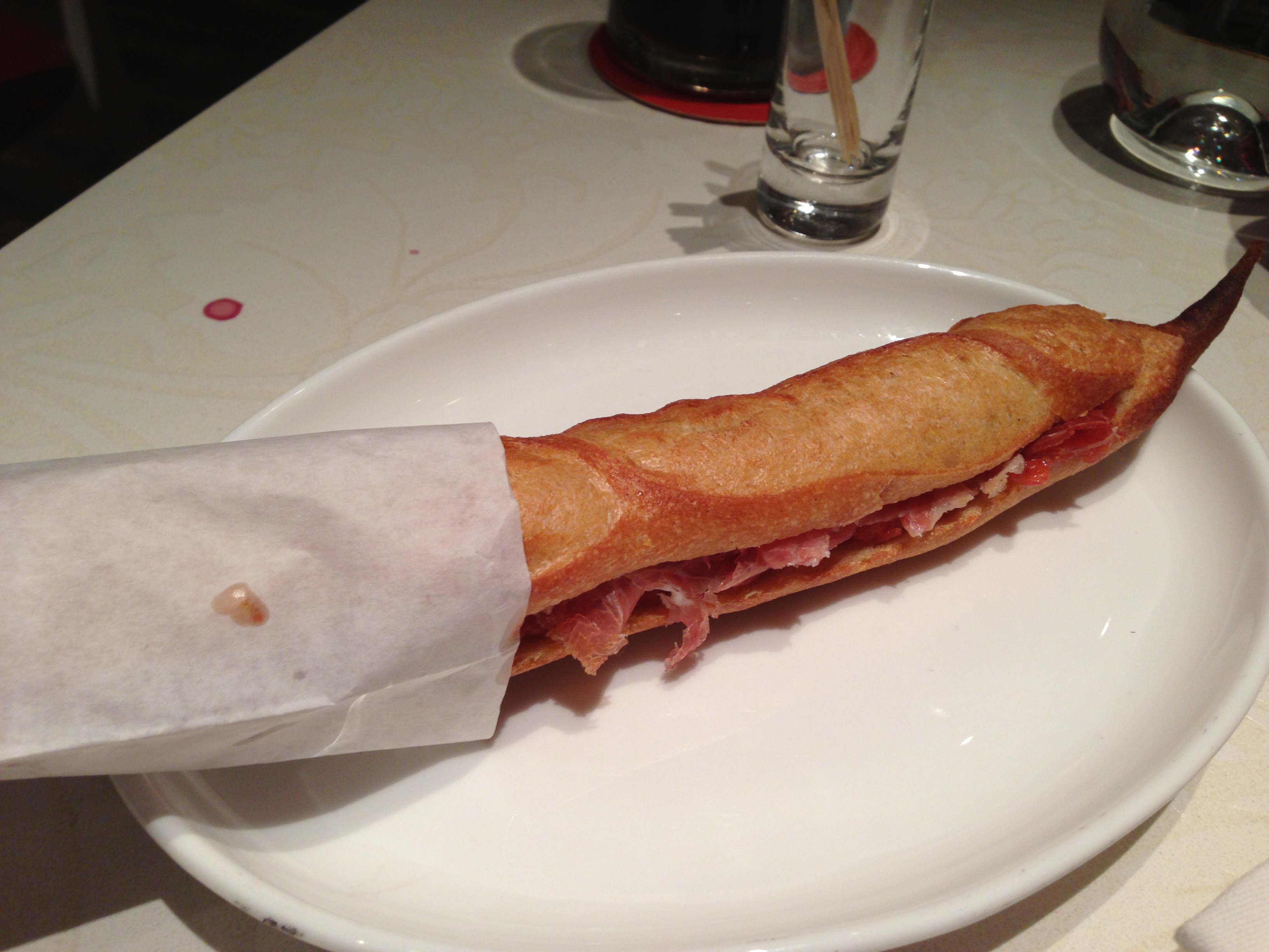 flauta bread brushed with fresh tomato, extra virgin olive oil and serrano ham