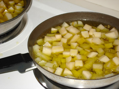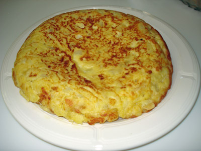 We were in Napa for a family reunion last month. For dinner one evening Francisco (Mike’s cousin’s husband) prepared traditional Spanish Tortillas. Francisco is from Spain. When I heard tortilla I immediately thought of the Mexican version but this was completely different. It was more like a frittata composed of eggs, onion and potatoes. Francisco let me watch him prepare the tortillas. The prep actually took most of the day since he was cooking for 25 people. He did everything from memory so there was no recipe. The tortilla was served up with a delicious tomato gazpacho. The tortilla was light and fluffy yet hearty. The flavors were very subtle — it would also pair nicely with a simple salad of baby greens and tomatoes drizzled with evoo and balsamic.