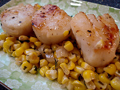 Pete, the winner of Rachael Ray’s Hey, Can you cook?! competition returned to the show to prepare a meal. His dish looked really good so we made it. What do you think? The scallops were grand and the corn I could totally see eating at our next Thanksgiving dinner. They were super buttery and had all those memorable holiday flavors. I think Pete deserves his win…