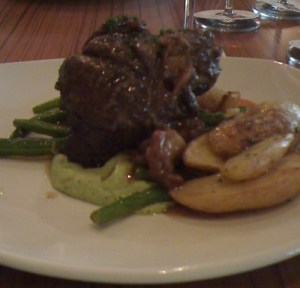 We started the night with the following appetizers; seafood bisque, crab cakes and butter braised beets with micro greens. All were good but the award winning crab cakes seemed to get the most admiration. Our main courses included: